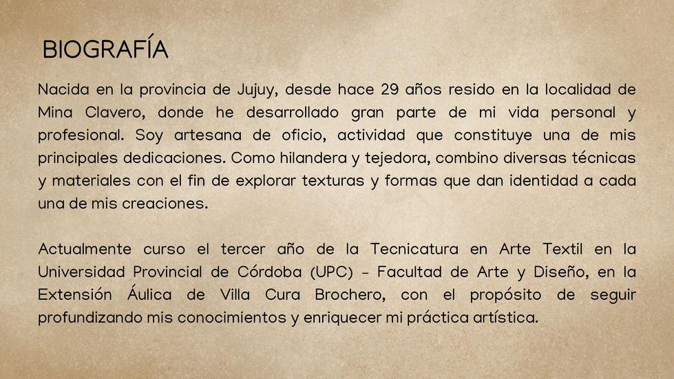 El contacto con los hilos me conecta profundamente con la tierra. Cada tejido que realizo es el reflejo de ese vinculo que, a través de la tradición y del tiempo, adquiere un significado cultural cargado de memoria y sentido.